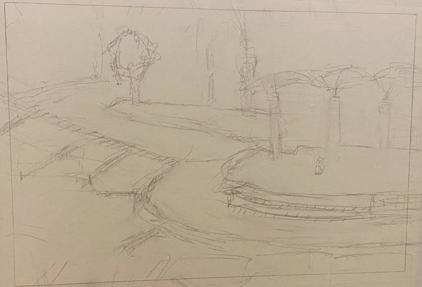 広めの公園。猫を追加予定だけれど、とりあえずそのまま描いてました。
